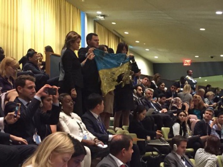 Ранее сообщалось, что делегация РФ покинула зал ГА ООН во время речи Порошенко в знак протеста.
