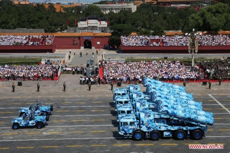 Показ военной мощи китайской армии раскрыл некоторые экземпляры новейшего вооружения, в том числе ракеты DF-21D, которые китайские СМИ назвали "козырем" на военном параде.