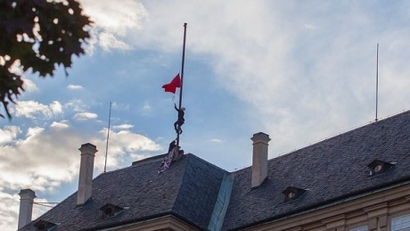 Как сообщалось, 19 сентября члены арт-группы Ztohoven провели перформанс: пробрались на охраняемую территорию Пражского Града, заменив на флагштоке президентский штандарт огромными трусами красного цвета.
