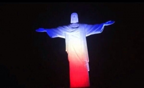 Лондонской стадион "Уэмбли", небоскребы в США и статуя Христа Спасителя в Рио-де-Жанейро подсвечены в цвета французского флага в память жертв французского теракта.
