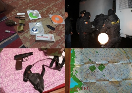 Во время обысков в домах, автомобилях, на складах, принадлежащих подозреваемым, были найдены оружие, форма военного образца, емкости со слезоточивым газом, значительные суммы денег, а также карты Бєльц и Кишинева, на одной из которых были обозначены пять объектов.