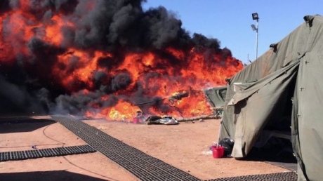 На кадрах в частности, видно охваченную огнем палатку, людей, пытающихся перелезть через забор, а также мужчину, который выкрикивает "мы люди, а не животные". Кадры, вероятно, были сняты на смартфон одного из мигрантов.