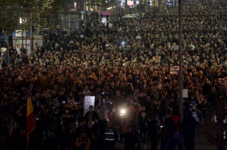 В ночь на среду в Бухаресте на улицах Бухареста собрались более 25 тысяч человек, требовали отставок в правительстве после трагического пожара в ночном клубе Colectiv.