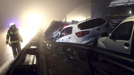 Массовое столкновение с участием десятков автомобилей, в том числе грузовиков и автобусов произошло в субботу на шоссе в западной Словении.
