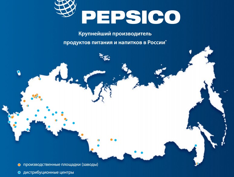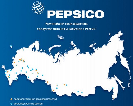На сайте компании представлена презентация о деятельности PepsiCo в РФ, и на карте, где обозначены российские производственные мощности и дистрибуционные центры, Крым указан частью России.