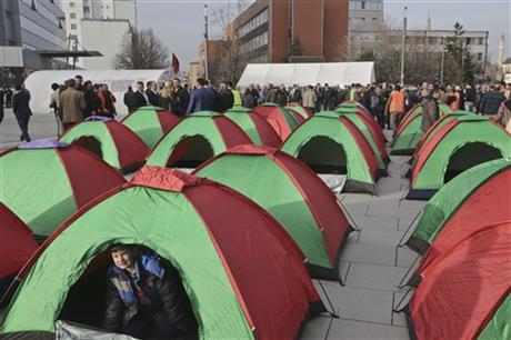 В центре Приштины оппозиция разбила палаточный лагерь перед зданием правительства Косово, требуя его отставки и новых выборов.