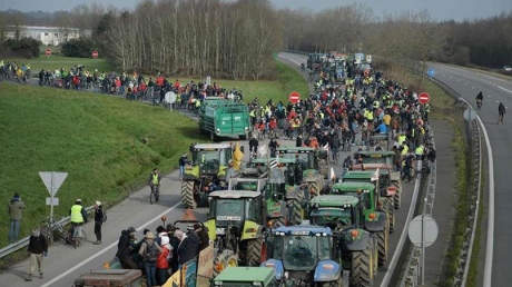Акция прошла на автостраде, которая соединяет города Нант и Ванн. Часть протестующих двигались пешком, часть – были на велосипедах и тракторах.