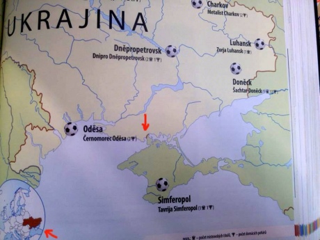 Как сообщалось, в Чехии в ноябре прошлого года издали "Футбольный атлас мира", в котором оккупированный Крым обозначен как российская территория.