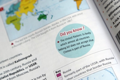 Новая версия школьного учебника Geog.3 поступила в продажу 29 февраля. В ней подчеркивается, что согласно международному праву Крым принадлежит Украине. В учебнике указано, что ООН не признает Крым как часть российской территории, а большинство стран мира, в том числе Великобритания, осудили незаконный референдум в 2014 году на полуострове.