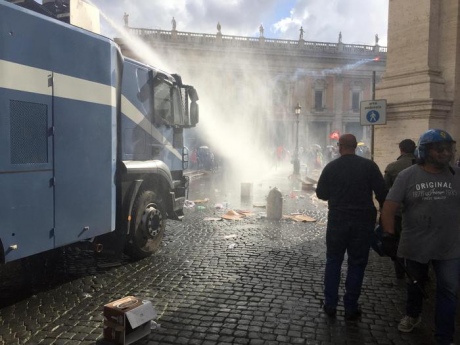 Полиция Рима в четверг применила водометы против демонстрантов, протестовавших против жилищной политики левоцентристского правительства во главе с премьером Маттео Ренци.