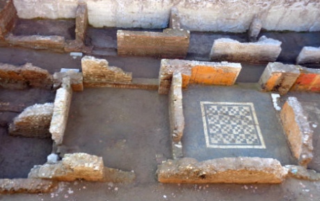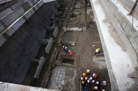 Параллельно со строительством станции археологи очищают от грязи артефакты и мозаики на глубине 9 метров ниже уровня улицы. Руины занимают площадь около 900 кв. м.