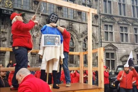 В Бельгии протестующие "повесили" чучело премьер-министра