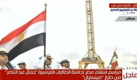 В четверг он вместе с французским коллегой Жаном-Ивом Ле Дрианом посетил церемонию в порту Сен-Назер, где поднял над кораблем флаг Египта.