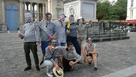 Во время акции участники, одетые в полосатые футболки, и с масками французских депутатов. в частности Тьерри Мариани, позировали перед зданием парламента.