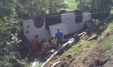 Автобус перевернулся крышу, уточняют журналисты с места события. Катастрофа произошла в гористой местности, автобус остановился несколькими метрами ниже дорожного полотна.