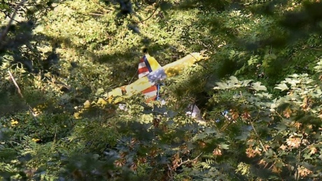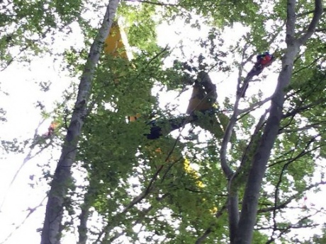 Спасательная операция была осложнена тем, что авария произошла в труднодоступной местности, а дерево, на которое приземлился самолет, растет на крутом склоне.