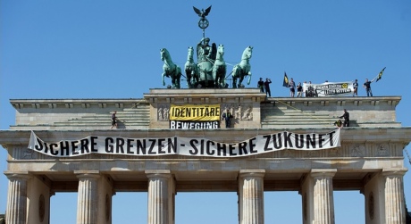 Правые радикалы из организации "Немецкое движение за идентичность" в знак протеста против миграционной политики нынешнего немецкого правительства взобрались на Бранденбургские ворота в Берлине.