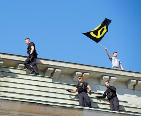 В Берлине правые радикалы забрались на Бранденбургские ворота