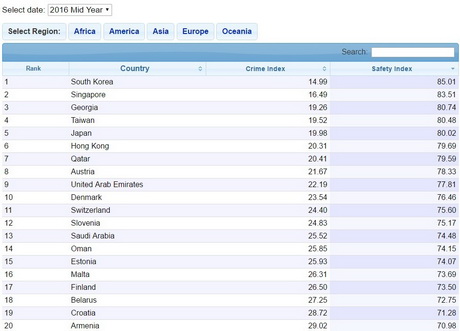 Так, по состоянию на середину 2016 года пользователи со всего мира разместили Грузию на третьем месте в рейтинге Crime Index for Country 2016 Mid Year.