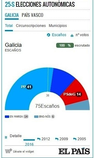 На выборах в местные парламенты, которые состоялись 25 сентября, правящая Народная партия побеждает на выборах в парламент Галисии, получив 47,53 % голосов.