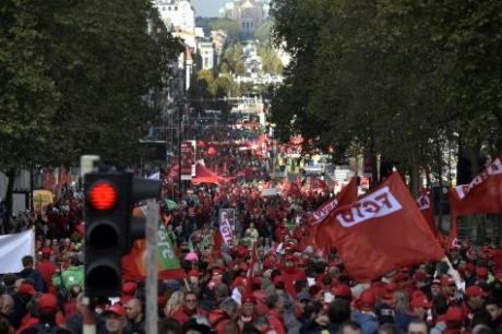 В Брюсселе тысячи людей вышли на организованную профсоюзами демонстрацию против политики правительства Шарля Мишеля.