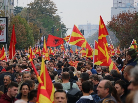 Марш, организованный главной оппозиционной партией Социал-демократов, был проведен в день 75-летия антифашистского восстания Македонии против болгарских, итальянских и немецких оккупантов в начале Второй мировой войны.