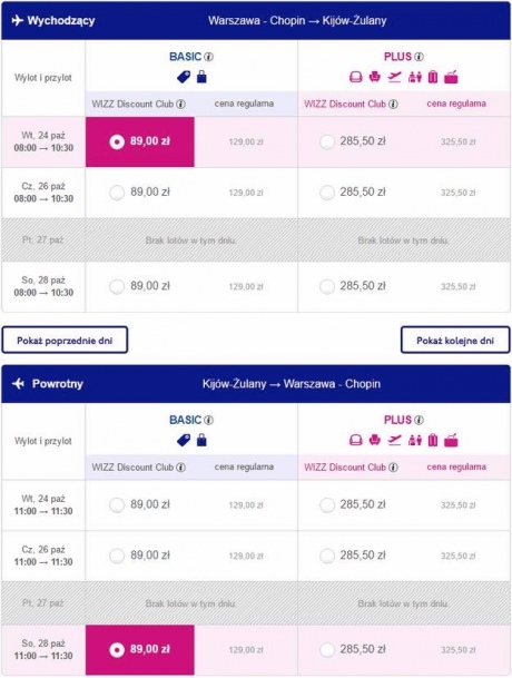 Сообщается, что с 1 июля Wizz Air будет летать из Варшавы в Киев по вторникам, четвергам и субботам. Официально авиакомпания не объявляла цены на билеты, однако на сайте fly4free прогнозируется, что цена на полет из Варшавы до Киева составит 89 польских злотых, или примерно 600 грн.