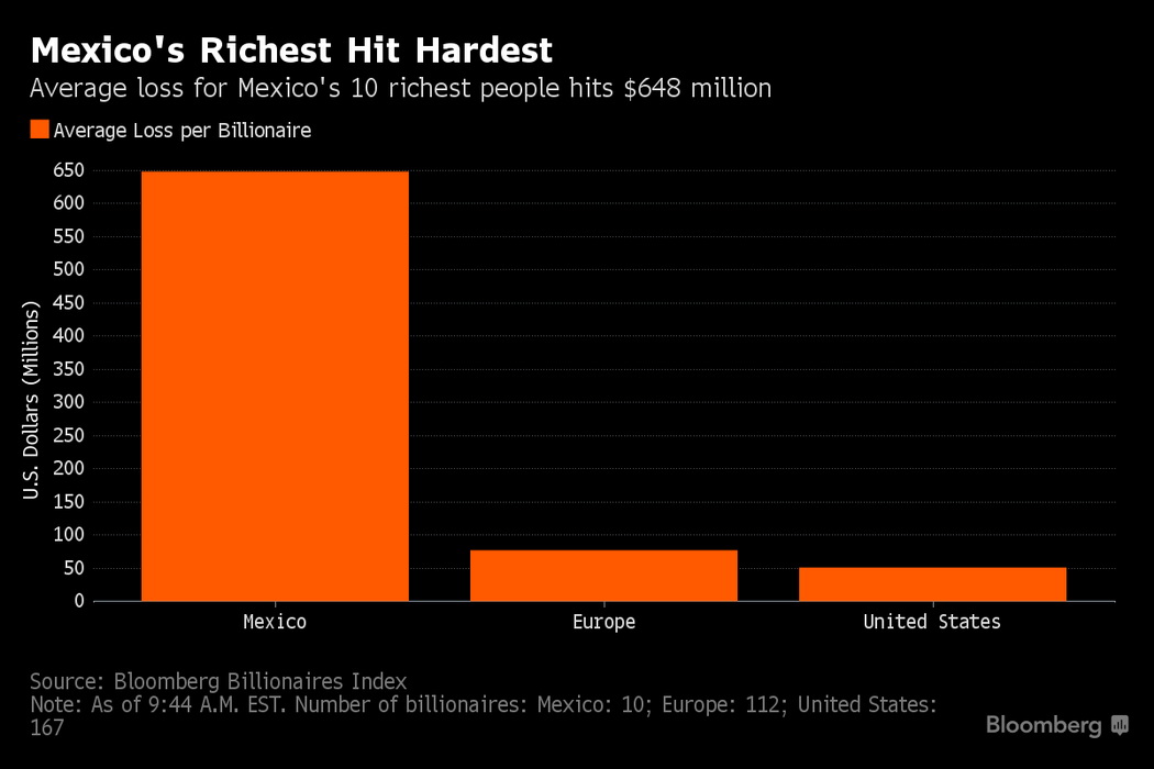 Самый богатый человек Мексики-Карлос Слим потерял в результате победы Трампа $5,1 млрд. Активы Слима, который является пятым в списке самых богатых людей мира, упали на 9,2%.
