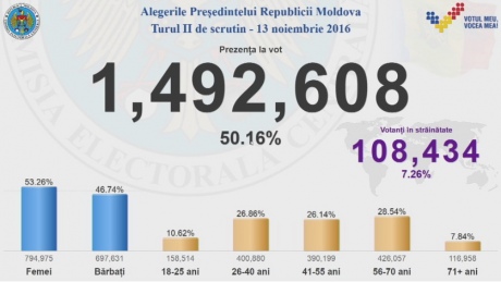 Центральная избирательная комиссия Молдавии сообщила, что явка избирателей на президентских выборах превысила 50%.
