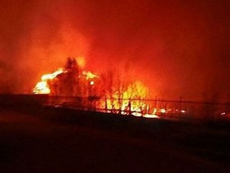 Команды пожарных эвакуировали людей из домов, расположенных недалеко пожара, вызванного взрывом.