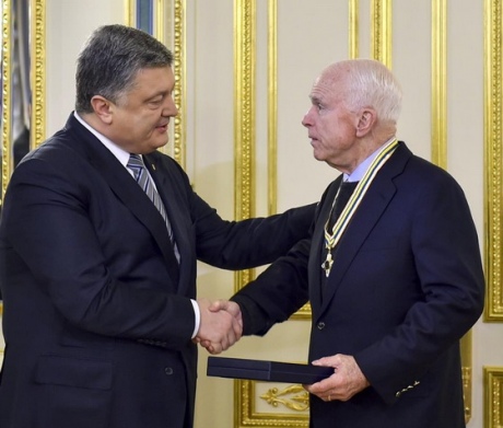 Президент наградил Маккейна орденом Свободы и отметил орденом Ярослава Мудрого сенатора Грэма за весомый личный вклад в укрепление отношений между Украиной и США.