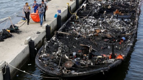 Остатки лодки с трупами сгоревших пассажиров отбуксированы в Джакарту.