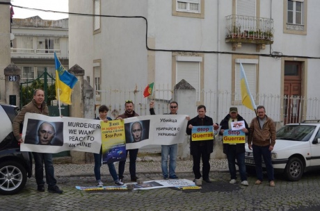 Как говорится в сообщении Союза украинцев в Португалии, акция под Институтом национальной безопасности проходила под лозунгом "С террористами не советуются как бороться с мировым терроризмом!".
