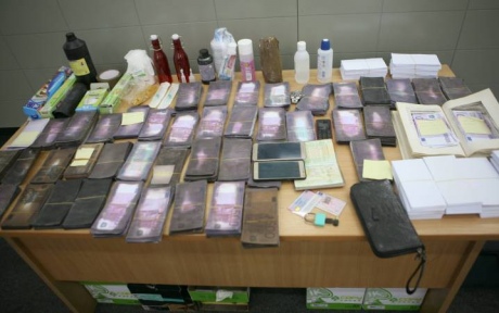 Полиция обнаружила поддельные банкноты номиналом 50, 100, 200 и 500 евро в сумке в багажнике такси. Также были найдены листы бумаги, нарезанные по размерам банкнот, и химические вещества для печати.