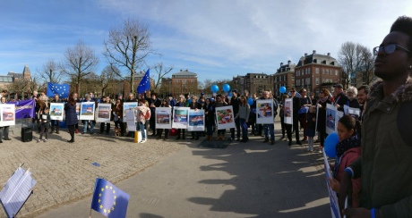 Тысячи европейцев в воскресенье вышли на улицы более 40 городов Германии, Нидерландов, Бельгии и Великобритании в знак протеста против популизма и в поддержку европейских ценностей перед выборами в Нидерландах и Франции.