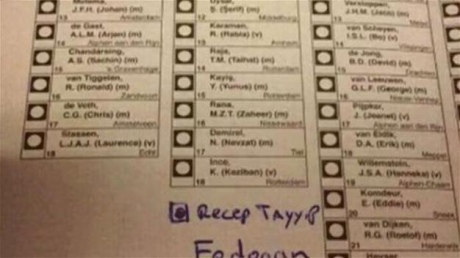 Имя президента Турции Эрдогана было написано на одном из бюллетеней для голосования во время парламентских выборов в Нидерландах.