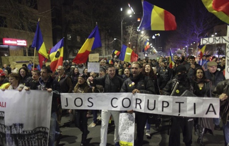 В Бухаресте около 10 тысяч человек прошли маршем от здания правительства до зданий конституционного суда и антикоррупционного бюро.