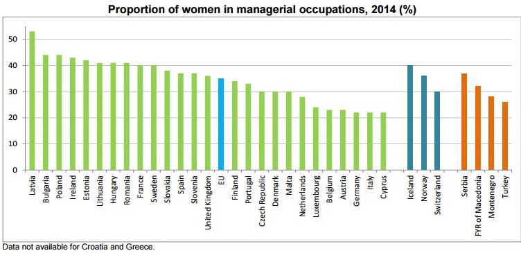 В Латвии 53% руководящих должностей занимают женщины, и это самый высокий показатель среди стран Евросоюза.
