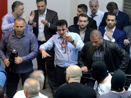 По крайней мере четыре депутата, все от нового парламентского большинства, в том числе лидер социал-демократов Зоран Заев, получили травмы.