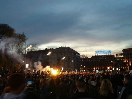 Митингующие утверждают, что победа Вучича положила начало "диктатуре" в стране. С криками "Мы не хотим Вучича!" и "Вучич-вор!", толпа перекрыла движение транспорта перед зданием парламента Сербии.