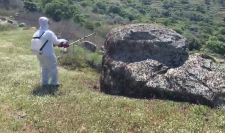 Для борьбы с насекомыми привлекли студентов из аграрного университета Афин, которые распыляют специальные химикаты, которые убивают саранчу, но не вредят окружающей среде.