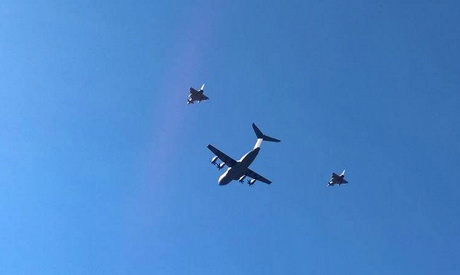 В параде, среди прочих, приняли участие реактивные истребители и транспортная авиация союзников.
