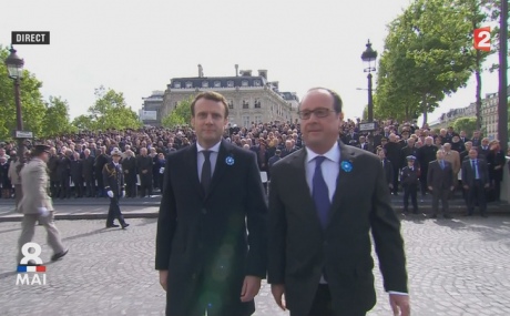 Макрон вместе с Олландом принял участие в церемонии в честь Дня победы в Европе
