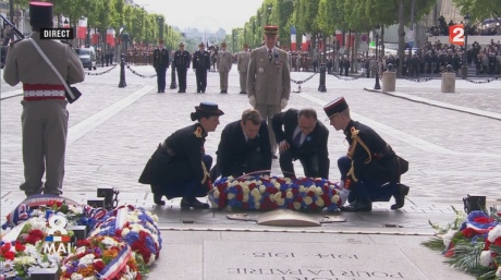 Победитель выборов президента Франции Эммануэль Макрон принял участие в церемонии в честь окончания Второй Мировой войны в 1945 году.