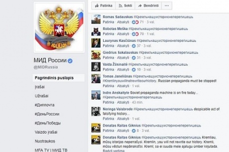 Жители Литвы устроили на странице МИД РФ в Facebook флешмоб, массово оставляя комментарии под заявлением министерства иностранных дел России, в которой партизан балтийских стран называют преступниками.