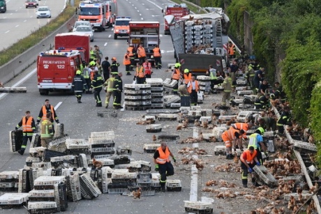 В Австрии тысячи кур выпали из грузовика, заблокировав автобан
