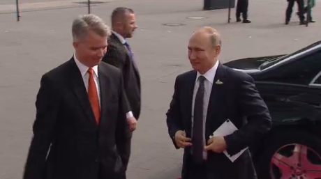 Путин прибыл на место проведения саммита одним из первых, при этом он приехал лимузине "Мercedes" с российскими номерами, хотя большинство гостей прибыли на авто с немецкими номерами, очевидно предоставленных принимающей стороной.