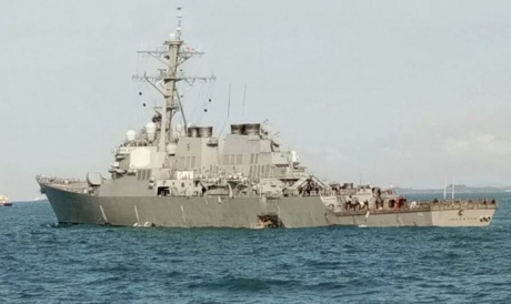 Ракетный эсминец ВМС США John McCain S столкнулся торговым судном вблизи Сингапура.