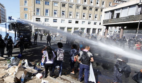 Сообщается, что во время протестов 24 августа мигранты бросали камни и бутылки в полицию, которая пыталась вывести их с площади.