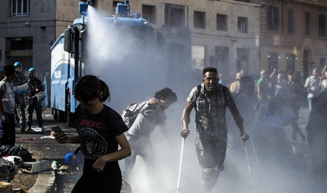 В Риме на площади Независимости полиция водометами разогнала около 100 мигрантов из Эфиопии и Эритреи, которые протестовали против выселения из пустого здания поблизости.